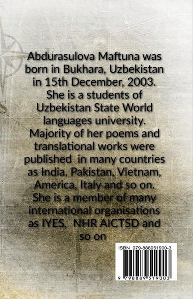 This book is about Russion poet who had lived in Uzbekistan and haf great contribution on not only Uzbek, but also to the whole world literature. This book consists of Aleksandr Feinberg`s short biography and translation of his poems to English.