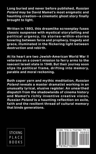 Long buried and never before published, Russian Poland may be David Mamet's most enigmatic and haunting creation-a cinematic ghost story finally brought to light. Written in 1993, this dreamlike screenplay fuses classic suspense with mystical storytelling and political urgency, its stories-within-stories hovering between farce and prophecy, tragedy and grace, illuminated in the flickering light between destruction and rebirth. At its heart are two Jewish-American World War II veterans on a covert mission to ferry arms to the nascent Israeli state in 1948. But their journey soon slips its political frame, drifting into memory, parable and moral reckoning. Both caper yarn and mythic meditation, Russian Poland reveals a master dramatist working in an unusually lyrical, elusive register. An unearthed dispatch from the shadowlands of cinema history and Mamet's richly inventive creative vision, Russian Poland is a haunting reflection on exile, faith and the resilient thread of cultural memory that binds generations.