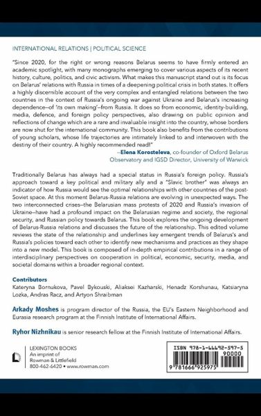 Chapter 1: Belarus-Russia Relations: Identity as Product and Factor by Aliaksei Kazharski and Katsiaryna Lozka Chapter 2: The Economic Dimension of the Russian Policy Towards Belarus by Kateryna Bornukova Chapter 3: Russia's Defense Policy and Belarus After 2020 by Andras Racz Chapter 4: Falling into a Trap of the Own Making: Lukashenka's Foreign Policy since 2020 by Arkady Moshes and Ryhor Nizhnikau Chapter 5: Belarus-Russia Relations in Belarusian Public Opinion Polls by Henadz Korshunau Chapter 6: The Belarusian Opposition and Russia: Evolving Attitudes since 2020 by Artyom Shraibman Chapter 7: A Loss of Media Sovereignty: Synchronization of Belarusian and Russian Propaganda after 2020 by Pavel Bykouski