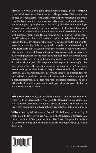 Russian Regional Journalism: Struggle and Survival in the Heartland takes an intimate look at the enormous challenges and small victories experienced by local Russian journalists across the post-perestroika and Putin eras. The book examines 13 years of journalists' struggles for independence and meaning as they weigh their professional goals and community obligations against their growing dependence on local elite. Russia's sub-national levels-its provinces and communities-remain understudied but important. Local newspapers are the only means by which news reaches many rural Russians, and Russia's "heartland" regions are a significant source of support for the current national regime. The book contributes importantly to our understanding of Russian journalism, and to our understanding of local journalism generally, an increasingly vulnerable institution in countries around the world. Russian Regional Journalism seeks answers to a number of questions: How do challenging political-economic environments constrain and guide the ways Russian journalists imagine their roles and do their work? Can journalists represent their regions in meaningful, distinct ways, and are they seeking autonomy or mere survival? How does local Russian journalism fit within the global context of local journalism? Russian Regional Journalism will serve as a valuable companion text for senior-level or graduate courses on Russian media and culture, global media, local journalism, media production, and media sociology. The book will also be of value to anyone interested in journalism's ongoing challenges in a diverse, changing world.
