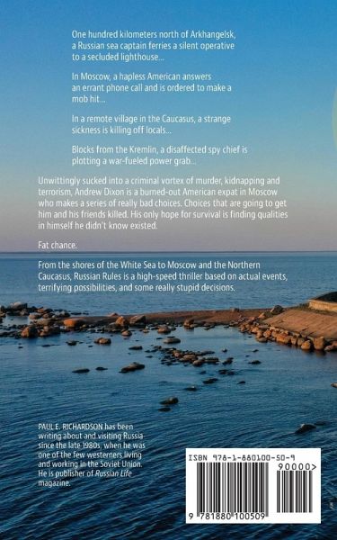 One hundred kilometers north of Arkhangelsk, a Russian sea captain ferries a silent operative to a secluded lighthouse. In Moscow, a hapless American answers an errant phone call and is ordered to make a mob hit. In a remote village in the Caucasus, a strange sickness is killing off locals. Blocks from the Kremlin, a disaffected spy chief is plotting a war-fueled power grab. Unwittingly sucked into a criminal vortex of murder, kidnapping and terrorism, Andrew Dixon is a burned-out American expat in Moscow who makes a series of really bad choices. Choices that are going to get him and his friends killed. His only hope for survival is finding qualities in himself he didn't know existed. Fat chance. From the shores of the White Sea to Moscow and the Northern Caucasus, Russian Rules is a high-speed thriller based on actual events, terrifying possibilities, and some really stupid decisions.