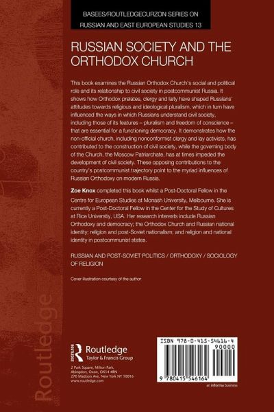 Russian Society and the Orthodox Church examines the Russian Orthodox Church's social and political role and its relationship to civil society in post-Communist Russia. It shows how Orthodox prelates, clergy and laity have shaped Russians' attitudes towards religious and ideological pluralism, which in turn have influenced the ways in which Russians understand civil society, including those of its features - pluralism and freedom of conscience - that are essential for a functioning democracy. It shows how the official church, including the Moscow Patriarchate, has impeded the development of civil society, while on the other hand the non-official church, including nonconformist clergy and lay activists, has promoted concepts central to civil society.
