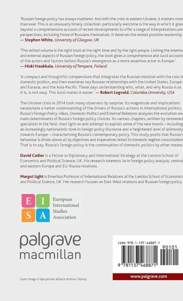 "David Cadier and Margot Light's edited volume insightfully charts the influence of domestic and external factors on Russia's foreign policy and its actions in Ukraine. ... Russia's foreign policy is invaluable reading for all those interested in Russian foreign policy and its recent evolution." (Cristian Nitoiu, International Affairs, Vol. 91 (5), 2015)