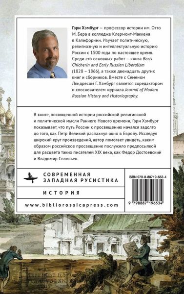 ENG This book, focusing on the history of religious and political thinking in early modern Russia, demonstrates that Russia's path toward enlightenment began long before Peter the Great’s opening to the West. Examining a broad range of writings, G. M. Hamburg shows why Russia’s enlightenment constituted a precondition for the explosive emergence of nineteenth-century writers such as Fedor Dostoevsky and Vladimir Soloviev RUS В книге, посвященной истории российской религиозной и политической мысли Раннего Нового времени, автор показывает, что путь России к просвещению начался задолго до того, как Петр Великий распахнул окно в Европу. Исследуя широкий круг произведений, Г. М. Хэмбург помогает увидеть, каким образом российское просвещение послужило предпосылкой для расцвета таких писателей XIX век