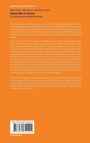 This book explores how Russia's War on Ukraine has changed the global nuclear order. The Russian aggression against Ukraine questioned the values of the liberal regimes and systems upon which the global nuclear order is built. At the heart of this nuclear order lies the 1968 Treaty on the Non-Proliferation of Nuclear Weapons (NPT), which remains until today the cornerstone of the global nuclear disarmament and nonproliferation regime.