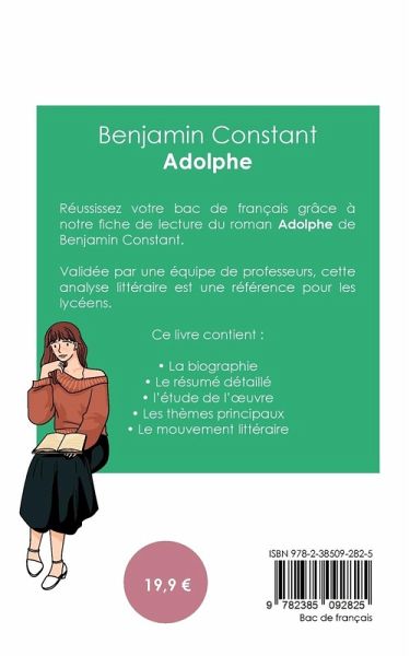 Réussissez votre bac de français 2023 grâce à notre fiche de lecture du roman Adolphe de Benjamin Constant ! Validée par une équipe de professeurs, cette analyse littéraire est une référence pour tous les lycéens. Grâce à notre travail éditorial, les points suivants n'auront plus aucun secret pour vous : la biographie de l'écrivain, le résumé du livre, l'étude de l'oeuvre, l'analyse des thèmes principaux à connaître et le mouvement littéraire auquel est rattaché l'auteur.