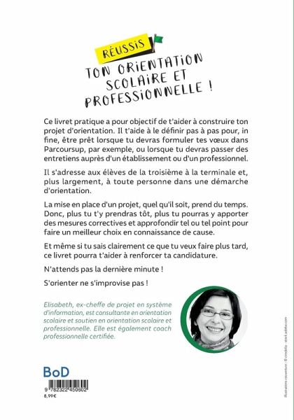 Ce livret pratique a pour objectif de t'aider à construire ton projet d'orientation. Il t'aide à le définir pas à pas pour, in fine, être prêt lorsque tu devras formuler tes voeux dans Parcoursup, par exemple, ou lorsque tu devras passer des entretiens auprès d'un établissement ou d'un professionnel.Il s'adresse aux élèves de la troisième à la terminale et, plus largement, à toute personne dans une démarche d'orientation.La mise en place d'un projet, quel qu'il soit, prend du temps. Donc, plus tu t'y prendras tôt, plus tu pourras y apporter des mesures correctives et approfondir tel ou tel point pour faire un meilleur choix en connaissance de cause.Et même si tu sais clairement ce que tu veux faire plus tard, ce livret pourra t'aider à renforcer ta candidature.N'attends pas la dernière minute !S'orienter ne s'improvise pas !