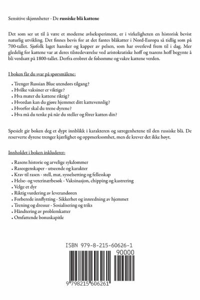 Sensitive skjønnheter - De russiske blå kattene Det som ser ut til å være et moderne avlseksperiment, er i virkeligheten en historisk bevist naturlig utvikling. Det finnes bevis for at det fantes blåkatter i Nord-Europa så tidlig som på 700-tallet. Sjøfolk laget hansker og kapper av pelsen, som har overlevd frem til i dag. Mer gledelig for kattene var at deres tilstedeværelse ved aristokratiske hoff og tsarens hoff begynte å bli verdsatt på 1800-tallet. Derfra erobret de følsomme og vakre kattene verden. I boken får du svar på spørsmålene:Trenger Russian Blue utendørs tilgang? Hvilke vaksiner er viktige? Hva mater du kattene riktig? Hvordan kan du gjøre hjemmet ditt kattevennlig? Hvorfor skal du trene dyrene? Hva må du tenke på når du steller og fôrer katten din? Spesielt gir boken deg et dypt innblikk i karakteren og særegenhetene til den russiske blå. De reserverte dyrene trenger kjærlighet og oppmerksomhet, men de krever det ikke høyt. Innholdet i boken inkluderer:Rasens historie og arvelige sykdommer Raseegenskaper - utseende og karakter Krav til rasen - stell, mat, sysselsetting og fellesskap Helse- og veterinærbesøk - Vaksinasjon, chipping og kastrering Velge et dyr Riktig vurdering av leverandøren Forberede innflytting - Sikkerhet og innredning av hjemmet Trening og dressur - Sosialisering og triks Håndtering av problemkatter Omfattende bonuskapitler Med rasekatter er unntaket regelen. Katten din kan også vise betydelig mer temperament eller være mer utadvendt enn det som er typisk for rasen. Les boken hvis du ikke er sikker på om en russisk blå katt er riktig for deg. Det er også en perfekt guide for alle som eier en slik katt, da den vil hjelpe deg med å forstå og trene dyret bedre. I tillegg gjør de mer enn 10 illustrasjonene boken praktisk og lett å forstå.