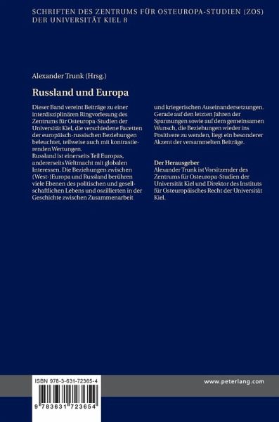 Dieser Band vereint Beiträge zu einer interdisziplinären Ringvorlesung des Zentrums für Osteuropa-Studien der Universität Kiel, die verschiedene Facetten der europäisch-russischen Beziehungen beleuchtet, teilweise auch mit kontrastierenden Wertungen.