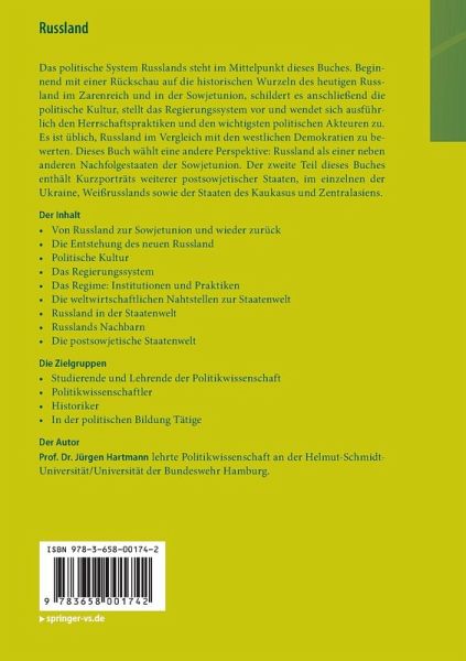 Das politische System Russlands steht im Mittelpunkt dieses Buches. Beginnend mit einer Rückschau auf die historischen Wurzeln des heutigen Russlands im Zarenreich und in der Sowjetunion, schildert es anschließend die politische Kultur, stellt das Regierungssystem vor und wendet sich ausführlich den Herrschaftspraktiken und den wichtigsten politischen Akteuren zu. Es ist üblich, Russland im Vergleich mit den westlichen Demokratien zu bewerten. Dieses Buch wählt eine andere Perspektive: Russland als einer neben anderen Nachfolgestaaten der Sowjetunion. Der zweite Teil dieses Buches enthält Kurzporträts weiterer postsowjetischer Staaten, im einzelnen der Ukraine, Weißrusslands sowie der Staaten des Kaukasus und Zentralasiens.