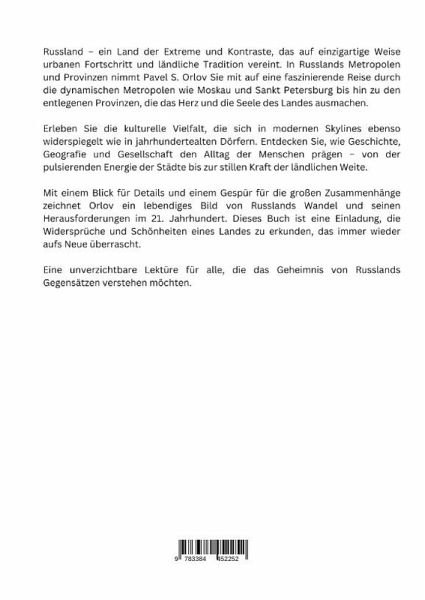 Russland - ein Land der Extreme und Kontraste, das auf einzigartige Weise urbanen Fortschritt und ländliche Tradition vereint. In Russlands Metropolen und Provinzen nimmt Pavel S. Orlov Sie mit auf eine faszinierende Reise durch die dynamischen Metropolen wie Moskau und Sankt Petersburg bis hin zu den entlegenen Provinzen, die das Herz und die Seele des Landes ausmachen. Erleben Sie die kulturelle Vielfalt, die sich in modernen Skylines ebenso widerspiegelt wie in jahrhundertealten Dörfern. Entdecken Sie, wie Geschichte, Geografie und Gesellschaft den Alltag der Menschen prägen - von der…mehr