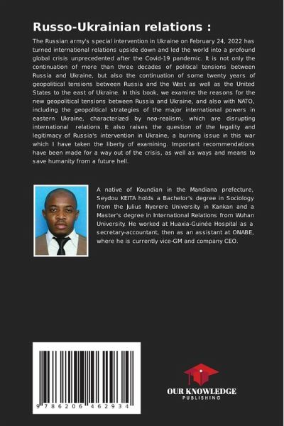 The Russian army's special intervention in Ukraine on February 24, 2022 has turned international relations upside down and led the world into a profound global crisis unprecedented after the Covid-19 pandemic. It is not only the continuation of more than three decades of political tensions between Russia and Ukraine, but also the continuation of some twenty years of geopolitical tensions between Russia and the West as well as the United States to the east of Ukraine. In this book, we examine the reasons for the new geopolitical tensions between Russia and Ukraine, and also with NATO, including the geopolitical strategies of the major international powers in eastern Ukraine, characterized by neo-realism, which are disrupting international relations. It also raises the question of the legality and legitimacy of Russia's intervention in Ukraine, a burning issue in this war which I have taken the liberty of examining. Important recommendations have been made for a way out of the crisis, as well as ways and means to save humanity from a future hell.