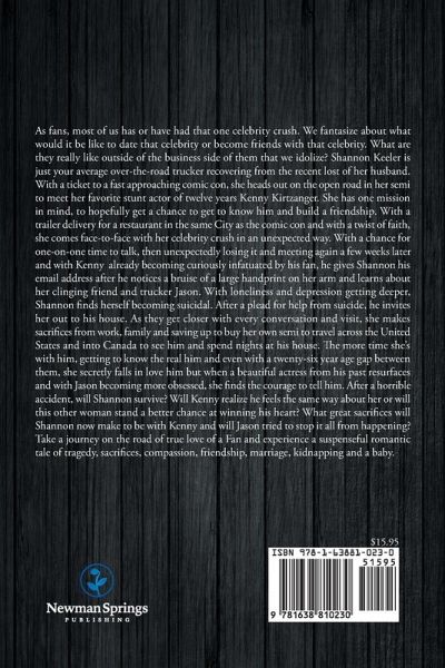 As fans, most of us has or have had that one celebrity crush. We fantasize about what would it be like to date that celebrity or become friends with that celebrity. What are they really like outside of the business side of them that we idolize? Shannon Keeler is just your average over-the-road trucker recovering from the recent lost of her husband. With a ticket to a fast approaching comic con, she heads out on the open road in her semi to meet her favorite stunt actor of twelve years Kenny Kirtzanger. She has one mission in mind, to hopefully get a chance to get to know him and build a friendship. With a trailer delivery for a restaurant in the same City as the comic con and with a twist of faith, she comes face-to-face with her celebrity crush in an unexpected way. With a chance for one-on-one time to talk, then unexpectedly losing it and meeting again a few weeks later and with Kenny already becoming curiously infatuated by his fan, he gives Shannon his email address after he notices a bruise of a large handprint on her arm and learns about her clinging friend and trucker Jason. With loneliness and depression getting deeper, Shannon finds herself becoming suicidal. After a plead for help from suicide, he invites her out to his house. As they get closer with every conversation and visit, she makes sacrifices from work, family and saving up to buy her own semi to travel across the United States and into Canada to see him and spend nights at his house. The more time she's with him, getting to know the real him and even with a twenty-six year age gap between them, she secretly falls in love him but when a beautiful actress from his past resurfaces and with Jason becoming more obsessed, she finds the courage to tell him. After a horrible accident, will Shannon survive? Will Kenny realize he feels the same way about her or will this other woman stand a better chance at winning his heart? What great sacrifices will Shannon now make to be with Kenny and will Jason tried to stop it all from happening? Take a journey on the road of true love of a Fan and experience a suspenseful romantic tale of tragedy, sacrifices, compassion, friendship, marriage, kidnapping and a baby.
