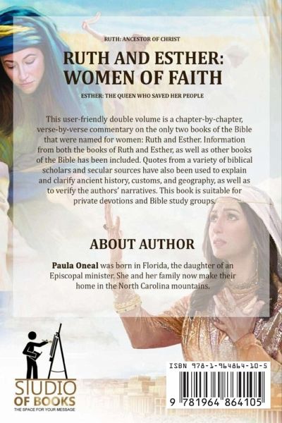 RUTH: ANCESTOR OF CHRISTRUTH AND ESTHER: WOMEN OF FAITHESTHER: THE QUEEN WHO SAVED HER PEOPLE This user-friendly double volume is a chapter-by-chapter, verse-by-verse commentary on the only two books of the Bible that were named for women: Ruth and Esther. Information from both the books of Ruth and Esther, as well as other books of the Bible has been included. Quotes from a variety of biblical scholars and secular sources have also been used to explain and clarify ancient history, customs, and geography, as well as to verify the authors' narratives. This book is suitable for private devotions and Bible study groups. ABOUT AUTHORPaula Oneal was born in Florida, the daughter of an Episcopal minister. She and her family now make their home in the North Carolina mountains.