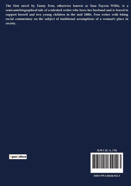 The first novel by Fanny Fern, otherwise known as Sara Payson Willis, is a semi-autobiographical tale of a talented writer who loses her husband and is forced to support herself and two young children in the mid 1800s. Fern writes with biting social commentary on the subject of traditional assumptions of a woman's place in society.