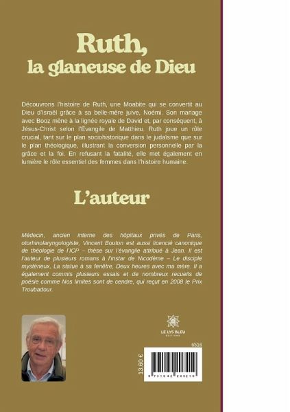 Découvrons l¿histoire de Ruth, une Moabite qui se convertit au Dieu d¿Israël grâce à sa belle-mère juive, Noémi. Son mariage avec Booz mène à la lignée royale de David et, par conséquent, à Jésus-Christ selon l¿Évangile de Matthieu. Ruth joue un rôle crucial, tant sur le plan sociohistorique dans le judaïsme que sur le plan théologique, illustrant la conversion personnelle par la grâce et la foi. En refusant la fatalité, elle met également en lumière le rôle essentiel des femmes dans l¿histoire humaine.