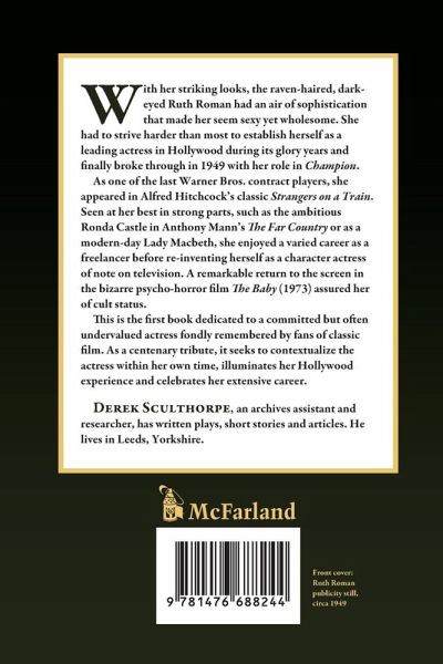 With her striking looks, the raven-haired, dark eyed Ruth Roman had an air of sophistication that made her seem sexy yet wholesome. She had to strive harder than most to establish herself as a leading actress in Hollywood during its glory years and finally broke through in 1949 with her role in Champion. As one of the last Warner Bros. contract players, she appeared in Alfred Hitchcock's classic Strangers on a Train. Seen at her best in strong parts, such as the ambitious Ronda Castle in Anthony Mann's The Far Country or as a modern-day Lady Macbeth, she enjoyed a varied career as a freelancer before re-inventing herself as a character actress of note on television. A remarkable return to the screen in the bizarre psycho-horror The Baby (1973) assured her of cult status. This is the first book dedicated to a committed but often undervalued actress who is fondly remembered by fans of classic film. More than a biography, it seeks to contextualize the actress within her own time, illuminate her Hollywood experience and celebrate her extensive career.
