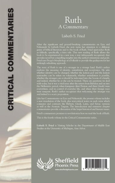 After the significant and ground-breaking commentaries on Ezra and Nehemiah by Lisbeth Fried, she now turns her attention to a different genre of biblical literature and to the book of Ruth. Fried approaches Ruth as folktale, specifically, a fairy tale. This new reading of Ruth allows the book to be experienced in a new way, a way infrequently recognized, that provides novel but compelling insights into the author's intentions and goals. Fried uses Propp's Morphology of a Folktale to provide the guideposts for her strikingly refreshing approach. The story of Ruth is one of a stranger in a strange land. Ruth's author explores the meaning of identity, assimilation and acceptance. He asks whether identity can be changed, whether the Judean god and the Judean nationality can be taken on voluntarily, whether assimilation is possible, whether the stranger can or should be welcomed into the bosom of a family, and indeed, whether he or she can be trusted. These are questions we deal with today, but it was a vital issue after the return from Babylon and on into the Hellenistic period, when foreigners (first Persian and then Greek) were everywhere, and in control of everyday life, and when their foreign ways were rampant. Ruth's author recognizes that welcoming the stranger was and indeed is a scary proposition. Like her Commentaries on Ezra and Nehemiah, the present volume includes a new translation of the book, plus text-critical notes on each verse which compares and contrasts the Hebrew, Greek, Latin, and Syriac versions as well as the Aramaic Targum. The Introduction and extensive chapter commentaries provide a discussion of the larger historical and literary issues. Fried's commentary promises to revolutionize how we read the book of Ruth. This is the fourth volume in the Critical Commentaries series.