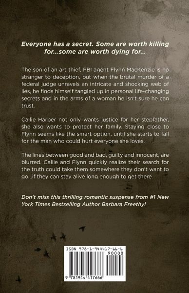 Everyone has a secret. Some are worth killing for…some are worth dying for… The son of an art thief, FBI agent Flynn MacKenzie is no stranger to deception, but when the brutal murder of a federal judge unravels an intricate and shocking web of lies, he finds himself tangled up in personal life-changing secrets and in the arms of a woman he isn't sure he can trust. Callie Harper not only wants justice for her stepfather, she also wants to protect her family. Staying close to Flynn seems like the smart option, until she starts to fall for the man who could hurt everyone she loves. The lines between good and bad, guilty and innocent, are blurred. Callie and Flynn quickly realize their search for the truth could take them somewhere they don't want to go...if they can stay alive long enough to get there. Don't miss this thrilling romantic suspense from #1 New York Times Bestselling Author Barbara Freethy! Also Available in the FBI Series: Perilous Trust #1 Reckless Whisper #2 Desperate Play #3 Elusive Promise #4 Dangerous Choice #5 Ruthless Cross #6 Critical Doubt #7 What the readers are saying... "Count on Freethy to thrill your socks off, while running away with your heart. RUTHLESS CROSS had me holding my breath and biting my nails as I sat on the edge of my seat. Caught in an epic battle of good versus evil, two strangers risk everything to get to the truth." Isha C "RUTHLESS CROSS is another adrenaline-filled story, with well written and developed characters, Barbara Freethy is a master of her craft !" Booklovers Anonymous "Barbara Freethy writes a beautiful, edge of the seat story, full of intrigue, mystery and romance. This is my favorite FBI series! Can’t wait to read the next book!" Christine