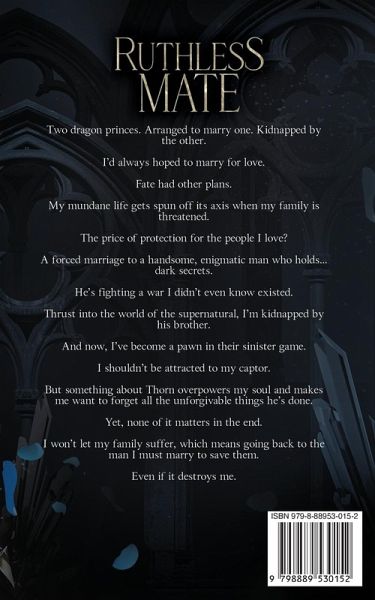 Two dragon princes. Arranged to marry one. Kidnapped by the other. I'd always hoped to marry for love. Fate had other plans. My mundane life gets spun off its axis when my family is threatened. The price of protection for the people I love? A forced marriage to a handsome, enigmatic man who holds... dark secrets. He's fighting a war I didn't even know existed. Thrust into the world of the supernatural, I'm kidnapped by his brother. And now, I've become a pawn in their sinister game. I shouldn't be attracted to my captor. But something about Thorn overpowers my soul and makes me want to forget all the unforgivable things he's done. Yet, none of it matters in the end. I won't let my family suffer, which means going back to the man I must marry to save them. Even if it destroys me. One-click this steamy and suspenseful arranged marriage, love triangle, fated mates, royal dragon shifter romance today!
