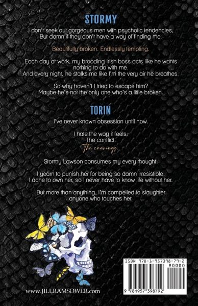 Stormy I don't seek out gorgeous men with psychotic tendencies, But damn if they don't have a way of finding me. Beautifully broken. Endlessly tempting. Each day at work, my brooding Irish boss acts like he wants nothing to do with me. And every night, he stalks me like I'm the very air he breathes. So why haven't I tried to escape him? Maybe he's not the only one who's a little broken. Torin I've never known obsession until now. I hate the way it feels. The conflict. The cravings. Stormy Lawson consumes my every thought. I yearn to punish her for being so damn irresistible. I ache to own her, so I never have to know life without her. But more than anything, I'm compelled to slaughter anyone who comes between us.