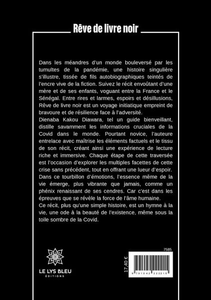Dans les méandres d'un monde bouleversé par les tumultes de la pandémie, une histoire singulière s'illustre, tissée de fils autobiographiques teintés de l'encre vive de la fiction. Suivez le récit envoûtant d'une mère et de ses enfants, voguant entre la France et le Sénégal. Entre rires et larmes, espoirs et désillusions, Rêve de livre noir est un voyage initiatique empreint de bravoure et de résilience face à l'adversité. Dienaba Kakou Diawara, tel un guide bienveillant, distille savamment les informations cruciales de la Covid dans le monde. Pourtant novice, l'auteure entrelace avec maîtrise les éléments factuels et le tissu de son récit, créant ainsi une expérience de lecture riche et immersive. Chaque étape de cette traversée est l'occasion d'explorer les multiples facettes de cette crise sans précédent, tout en offrant une lueur d'espoir. Dans ce tourbillon d'émotions, l'essence même de la vie émerge, plus vibrante que jamais, comme un phénix renaissant de ses cendres. Car c'est dans les épreuves que se révèle la force de l'âme humaine. Ce récit, plus qu'une simple histoire, est un hymne à la vie, une ode à la beauté de l'existence, même sous la toile sombre de la Covid.