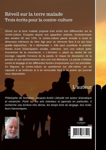 Réveil sur la terre malade propose trois écrits très différenciés sur la contre-culture. Évoquée depuis son apparition violente, révolutionnaire des années 60 aux USA, la contre-culture passe ensuite à toute la dimension intérieure du New Age pour se retrouver face à ce qui nous guette aujourd¿hui : le « déshumain ». Elle peut constituer le premier niveau d¿une émancipation sociale, collective, vers une culture autre d¿ouverture de la conscience. « L¿écriveur », placé au centre de cet ouvrage, rappelle l¿errance de la parole, le risque de dissolution de la pensée et son acheminement vers une non-littérature. La parole s¿obstine contre le langage et les différentes formes d¿expression qui l¿ont précédée. En filigrane, la contre-culture se questionne sur elle-même, sur sa capacité à se renforcer et à se renouveler face à un avenir qui pourrait nous déposséder.