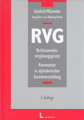 Der als BRAGO-Kommentar von Göttlich und Mümmler begründete, jetzt in 2. Auflage von Rehberg und Xanke bearbeitete RVG-Kommentar berücksichtigt die seit In-Kraft-Treten des RVG ergangene Rechtsprechung ebenso wie bereits die zum 1.7.2006 eintretende Änderung der freien Vereinbarkeit außergerichtlicher Vergütungen.