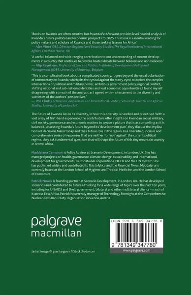 'Books on Rwanda are often emotive but Rwanda Fast Forward provides level headed analysis of Rwanda's future political and economic prospects to 2025. This book is essential reading for policy makers and scholars of Rwanda and those seeking lessons for Africa'. Alex Vines OBE, Director, Regional and Security Studies, The Royal Institute of International Affairs, Chatham House, UK 'A useful, balanced and wide-ranging contribution to our understanding of current developments in a country that continues to provoke heated debate between believers and non-believers.' - Filip Reyntjens, Professor of Law and Politics, Institute of Development Policy and Management (IOB), University of Antwerp, Belgium 'This is a complicated book about a complicated country. It goes beyond the usual polarisation of commentary on Rwanda, which pits the cynical against the starry-eyed, to explore the complex intersections of political and military power, ambitious government policy, regional conflict, shifting national and sub-national identities and vast economic opportunities. I found myself disagreeing with as much of the analysis as I agreed with - a testament to the diversity and subtleties of the authors' perspectives.' - Phil Clarke, Lecturer in Comparative and International Politics, School of Oriental and African Studies, University of London, UK