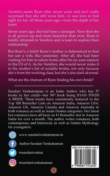 Varshini meets Ryan after seven years and isn't really surprised that she still loves him-it was love at first sight for her all those years ago-from the depth of her heart. Seven years ago, she had been a teenager. Now that she is all grown up and more beautiful than ever, Ryan is totally attracted to Varshini and is keen to explore their relationship. But there's a hitch! Ryan's mother is determined to find her son a wife, like yesterday. After all, she had been waiting for him to return home after his six-year sojourn in the US of A. As for Varshini, she would never make it to the mother's list of suitable brides, not only because she's from the working class, but she's also dark skinned. What are the chances of Ryan finding his own bride?