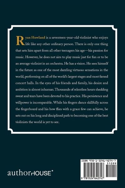 Ryan Howland is a seventeen-year-old violinist who enjoys life like any other ordinary person. There is only one thing that sets him apart from all other teenagers his age-his passion for music. However, he does not aim to play music just for fun or to be an average violinist in an orchestra. He has a vision. He sees himself in the future as one of the most dazzling virtuoso sensations in the world, performing on all of the world's largest stages and most famed concert halls. In the eyes of his friends and family, his desire and ambition is almost inhuman. Thousands of relentless hours shedding sweat and tears have been devoted to his practice. His persistence and willpower is incomparable. While his fingers dance skillfully across the fingerboard and his bow flies with a grace few can achieve, he sets out on his long and disciplined path to becoming one of the best violinists the world is yet to see.