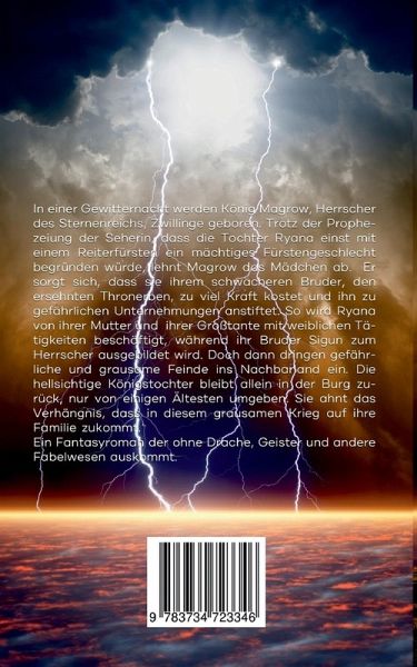 In einer Gewitternacht werden König Magrow, Herrscher des Sternenreichs, Zwillinge geboren. Trotz der Prophezeiung der Seherin, dass seine Tochter Ryana einst mit einem Reiterfürsten ein mächtiges Herrschergeschlecht begründen würde, lehnt Magrow das Mädchen ab. Er sorgt sich, dass sie ihrem schwächeren Bruder, dem ersehnten Thronerben, die Nahrung wegnimmt und ihn zu gefährlichen Unternehmungen anstiftet. So wird Ryana von ihrer Mutter und ihrer Großtante in weiblichen Tätigkeiten unterwiesen, während ihr Bruder Sigun zum Herrscher ausgebildet wird. Doch dann dringen gefährliche Feinde ins Nachbarland ein. Die hellsichtige Königstochter bleibt allein in der Burg zurück, nur von einigen Ältesten umgeben. Sie ahnt das Verhängnis, das in diesem grausamen Krieg auf ihre Familie zukommt.Ein Fantasyroman, der ohne Drachen, Geister und andere Fabelwesen auskommt.