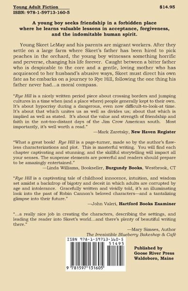 "The spirituals always signified that something important was going on; something extraordinary that needed God's special attention." A young boy seeks friendship in a forbidden place where he learns valuable lessons in acceptance, forgiveness, and the indomitable human spirit. Young Skeet LeMay and his parents are migrant workers who move from one place to the next in search of work. After they settle on a large farm where Skeet's father has been hired to pick peaches in the orchard, the young boy witnesses something horrific and perverse, changing his life forever. Caught between a bitter father who is despic-able to the core and a gentle, loving mother who has ac-quiesced to her husband's abusive ways, Skeet must di-rect his own fate as he embarks on a journey to Rye Hill, following the one thing his father never had...a moral compass. "I was off to find that colored boy. I didn't know what I would say to him or what he would say back, but I was so inclined to make his acquaintance that no one, not even Pa, could stop me now."