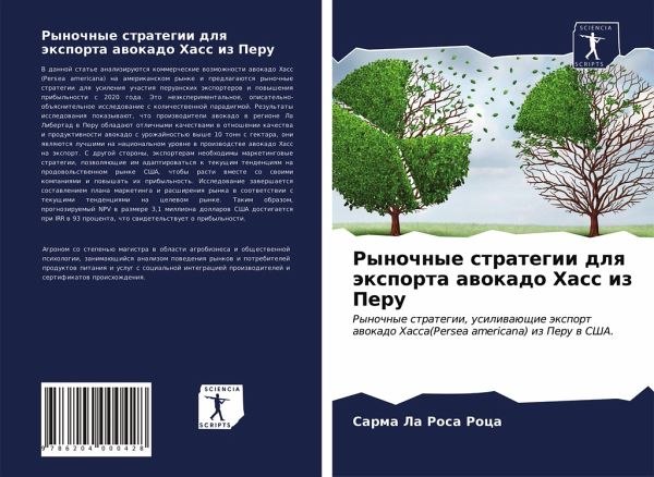 V dannoj stat'e analiziruütsq kommercheskie wozmozhnosti awokado Hass (Persea americana) na amerikanskom rynke i predlagaütsq rynochnye strategii dlq usileniq uchastiq peruanskih äxporterow i powysheniq pribyl'nosti s 2020 goda. Jeto neäxperimental'noe, opisatel'no-ob#qsnitel'noe issledowanie s kolichestwennoj paradigmoj. Rezul'taty issledowaniq pokazywaüt, chto proizwoditeli awokado w regione La Libertad w Peru obladaüt otlichnymi kachestwami w otnoshenii kachestwa i produktiwnosti awokado s urozhajnost'ü wyshe 10 tonn s gektara, oni qwlqütsq luchshimi na nacional'nom urowne w proizwodstwe awokado Hass na äxport. S drugoj storony, äxporteram neobhodimy marketingowye strategii, pozwolqüschie im adaptirowat'sq k tekuschim tendenciqm na prodowol'stwennom rynke SShA, chtoby rasti wmeste so swoimi kompaniqmi i powyshat' ih pribyl'nost'. Issledowanie zawershaetsq sostawleniem plana marketinga i rasshireniq rynka w sootwetstwii s tekuschimi tendenciqmi na celewom rynke. Takim obrazom, prognoziruemyj NPV w razmere 3,1 milliona dollarow SShA dostigaetsq pri IRR w 93 procenta, chto swidetel'stwuet o pribyl'nosti.