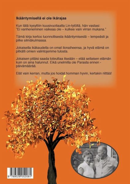 Ikääntymisellä ei ole ikärajaa Kun tätä kysyttiin kuusivuotiaalta Lin-tytöltä, hän vastasi: ¿Ei vanheneminen vaikeaa ole ¿ kulkee vain virran mukana.¿ Tämä kirja kertoo luonnollisesta ikääntymisestä ¿ lempeästi ja pilke silmäkulmassa. Jokaisella ikäkaudella on omat ilonaiheensa, ja hyvä elämä on pitkälti omien valintojemme tulosta. Jokaisen pitäisi saada toteuttaa itseään ¿ elää sellaisen elämän kuin on aina halunnut. Eikä unelmilla ole Parasta ennen -päivämäärää. Elät vain kerran, mutta jos hoidat homman hyvin, kertakin riittää!