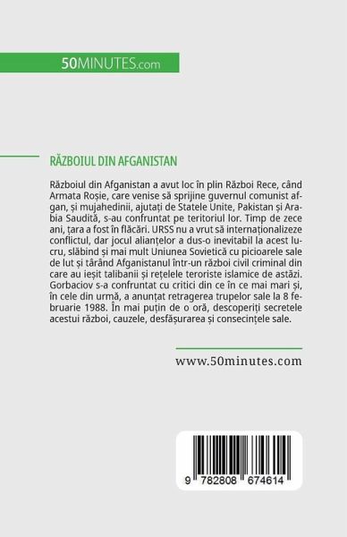 R¿zboiul din Afganistan a avut loc în plin R¿zboi Rece, când Armata Ro¿ie, care venise s¿ sprijine guvernul comunist afgan, ¿i mujahedinii, ajutäi de Statele Unite, Pakistan ¿i Arabia Saudit¿, s-au confruntat pe teritoriul lor. Timp de zece ani, ¿ara a fost în fl¿c¿ri. URSS nu a vrut s¿ internäionalizeze conflictul, dar jocul alian¿elor a dus-o inevitabil la acest lucru, sl¿bind ¿i mai mult Uniunea Sovietic¿ cu picioarele sale de lut ¿i târând Afganistanul într-un r¿zboi civil criminal din care au ie¿it talibanii ¿i re¿elele teroriste islamice de ast¿zi. Gorbaciov s-a confruntat cu critici din ce în ce mai mari ¿i, în cele din urm¿, a anun¿at retragerea trupelor sale la 8 februarie 1988. În mai pu¿in de o or¿, descoperi¿i secretele acestui r¿zboi, cauzele, desf¿¿urarea ¿i consecin¿ele sale.