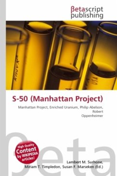 High Quality Content by WIKIPEDIA articles! S-50 was a Manhattan Project production facility in Oak Ridge, Tennessee, that was used to enrich uranium by means of liquid thermal diffusion. The thermal diffusion process for uranium isotope separation, which had been developed by U.S. Navy scientists, was not one of the uranium enrichment technologies initially selected for use in the Army-led Manhattan Project. However, in June 1944, after reviewing progress of Philip Abelson's experiments on thermal diffusion at the Philadelphia Navy Yard, a team of Manhattan Project experts recommended that a thermal diffusion plant be built to augment production capacity from the electromagnetic separation process then operating at the Y-12 plant in Oak Ridge.