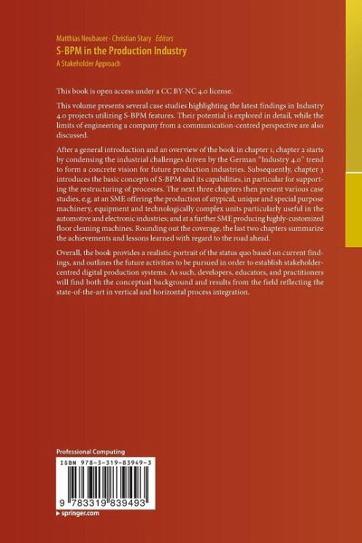 This volume presents several case studies highlighting the latest findings in Industry 4.0 projects utilizing S-BPM features. Their potential is explored in detail, while the limits of engineering a company from a communication-centred perspective are also discussed.