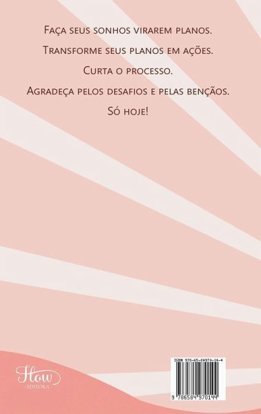 Esse guia foi criado com muito amor e carinho com o intuito de não apenas ajudar a planejar e treinar o foco na sua vida e seus afazeres, mas também de despertar em você momentos diários de atenção a si mesmo, estimular o autoconhecimento e praticar a gratidão. Eu sempre digo: o ontem já passou e o amanhã ainda não existe, então vamos nos concentrar no presente? Listas de tarefas ajudam muito no planejamento, mas às vezes fazemos muito mais do que está contido nelas e não damos o devido valor. Faça uma to do list, mas faça uma lista de tarefas feitas também e verá o quanto você trabalhou, estudou ou se dedicou! Tenha foco, mas divirta-se com os processos, colha as flores do caminho e agradeça! Comemore todos os seus resultados. Seja mais leve e descomplique a vida! Simplesmente seja simples! Só hoje!