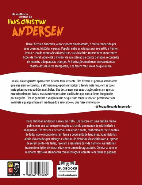 Hans Christian Andersen, autor e poeta dinamarquês, é muito conhecido por seus poemas, histórias e peças. Popular entre as crianças por seu estilo, humor, ironia e uso de expressões idiomáticas, suas histórias transmitem importantes lições de moral. Essa obra reúne o melhor de sua coleção de contos de fadas, recontados de maneira adequada às crianças. As ilustrações modernas acrescentam charme aos clássicos atemporais e os fazem mais vivos do que nunca.