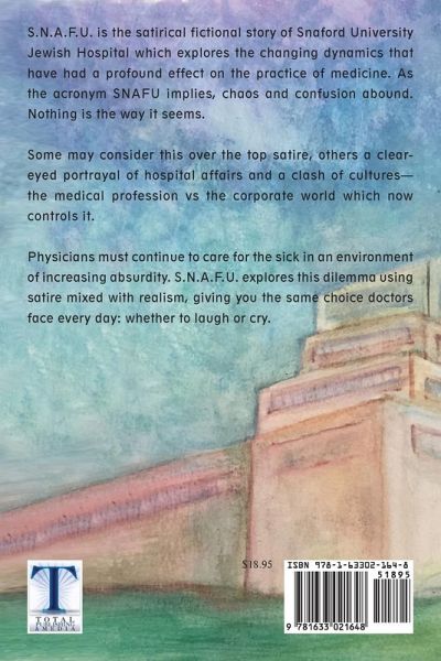 S.N.A.F.U. is the satirical fictional story of Snaford University Jewish Hospital which explores the changing dynamics that have had a profound effect on the practice of medicine. As the acronym SNAFU implies, chaos and confusion abound. Nothing is the way it seems. Some may consider this over the top satire, others a cleareyed portrayal of hospital affairs and a clash of cultures- the medical profession vs the corporate world which now controls it. Physicians must continue to care for the sick in an environment of increasing absurdity. S.N.A.F.U. explores this dilemma using satire mixed with realism, giving you the same choice doctors face every day: whether to laugh or cry.