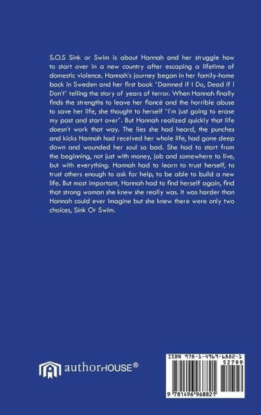 S.O.S Sink or Swim is about Hannah and her struggle how to start over in a new country after escaping a lifetime of domestic violence. Hannah's journey began in her family-home back in Sweden and her first book "Damned if I Do, Dead if I Don't" telling the story of years of terror. When Hannah finally finds the strengths to leave her fiancé and the horrible abuse to save her life, she thought to herself "I'm just going to erase my past and start over". But Hannah realized quickly that life doesn't work that way. The lies she had heard, the punches and kicks Hannah had received her whole life, had gone deep down and wounded her soul so bad. She had to start from the beginning, not just with money, job and somewhere to live, but with everything. Hannah had to learn to trust herself, to trust others enough to ask for help, to be able to build a new life. But most important, Hannah had to find herself again, find that strong woman she knew she really was. It was harder than Hannah could ever imagine but she knew there were only two choices, Sink Or Swim.