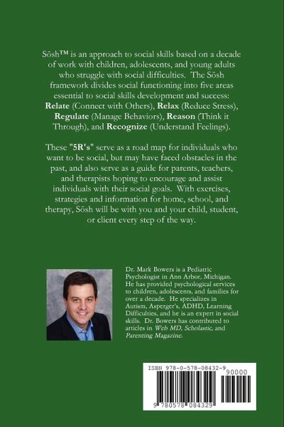 Sosh¿ is an approach to social skills based on a decade of work with children, adolescents, and young adults who struggle with social difficulties. The Sosh framework divides social functioning into five areas essential to social skills development and success: Relate (Connect with Others), Relax (Reduce Stress), Regulate (Manage Behaviors), Reason (Think it Through) and Recognize (Understand Feelings).