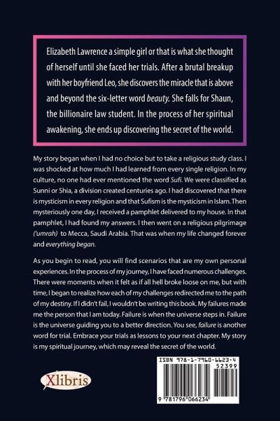 My story began when I had no choice but to take a religion class. I was shocked at how much I had learned from every single religion. In my culture, no one had ever mentioned the word Sufi. We were classified as Sunni or Shia, a division created centuries ago. I had discovered that there is mysticism in every religion and that Sufism is the mysticism in Islam. Then mysteriously one day, I received a pamphlet delivered to my house. In that pamphlet, I had found my answers. I then went on a religious pilgrimage (umrah) to Mecca, Saudi Arabia. That was when my life changed forever and everything began. As you begin to read, you will find scenarios that were my own personal experiences. In the process of my journey, I have faced numerous challenges. At the time, it felt like all hell broke loose on me, but with time, I began to realize how each of my challenges redirected me to the path of my destiny. If I didn't fail, I wouldn't be writing this book. My failures made me the person that I am today. Failure is when the universe steps in. Failure is the universe guiding you to a better direction. You see, failure is another word for trial. Embrace your trials as lessons to your next chapter. My story is my spiritual journey, which may reveal the secret of the world.
