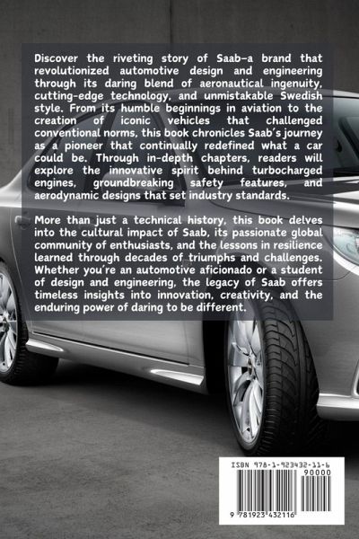 Discover the riveting story of Saab-a brand that revolutionized automotive design and engineering through its daring blend of aeronautical ingenuity, cutting-edge technology, and unmistakable Swedish style. From its humble beginnings in aviation to the creation of iconic vehicles that challenged conventional norms, this book chronicles Saab's journey as a pioneer that continually redefined what a car could be. Through in-depth chapters, readers will explore the innovative spirit behind turbocharged engines, groundbreaking safety features, and aerodynamic designs that set industry standards. More than just a technical history, this book delves into the cultural impact of Saab, its passionate global community of enthusiasts, and the lessons in resilience learned through decades of triumphs and challenges. Whether you're an automotive aficionado or a student of design and engineering, the legacy of Saab offers timeless insights into innovation, creativity, and the enduring power of daring to be different.