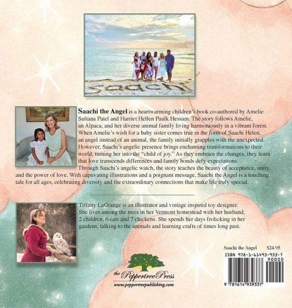Saachi the Angel is a heartwarming children's book co-authored by Amelie Sultana Patel and Harriet Hellen Paulk Hessam. The story follows Amelie, an Alpaca, and her diverse animal family living harmoniously in a vibrant forest. When Amelie's wish for a baby sister comes true in the form of Sacchi Helen, an angel instead of an animal, the family initially grapples with the unexpected. However, Saachi's angelic presence brings enchanting transformations to their world, turning into the "child of joy". As they embrace the changes, they learn that love transcends differences and family bonds defy…mehr