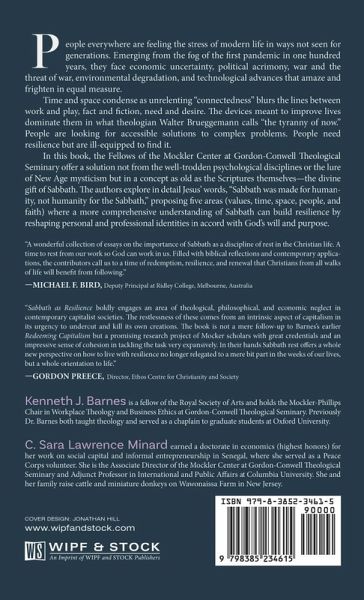 People everywhere are feeling the stress of modern life in ways not seen for generations. Emerging from the fog of the first pandemic in one hundred years, they face economic uncertainty, political acrimony, war and the threat of war, environmental degradation, and technological advances that amaze and frighten in equal measure. Time and space condense as unrelenting ""connectedness"" blurs the lines between work and play, fact and fiction, need and desire. The devices meant to improve lives dominate them in what theologian Walter Brueggemann calls ""the tyranny of now."" People are looking for accessible solutions to complex problems. People need resilience but are ill-equipped to find it. In this book, the Fellows of the Mockler Center at Gordon-Conwell Theological Seminary offer a solution not from the well-trodden psychological disciplines or the lure of New Age mysticism but in a concept as old as the Scriptures themselves--the divine gift of Sabbath. The authors explore in detail Jesus' words, ""Sabbath was made for humanity, not humanity for the Sabbath,"" proposing five areas (values, time, space, people, and faith) where a more comprehensive understanding of Sabbath can build resilience by reshaping personal and professional identities in accord with God's will and purpose.