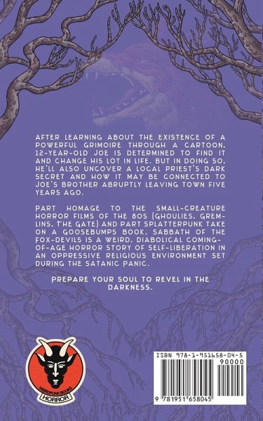 After learning about the existence of a powerful grimoire through a cartoon, 12-year-old Joe is determined to find it and change his lot in life. But in doing so, he'll also uncover a local priest's dark secret and how it may be connected to Joe's brother abruptly leaving town five years ago.Part homage to the small-creature horror films of the 80s (Ghoulies, Gremlins, The Gate) and part Splatterpunk take on a Goosebumps book, Sabbath of the Fox-Devils is a weird, diabolical coming-of-age horror story of self-liberation in an oppressive religious environment set during the Satanic Panic. Prepare your soul to revel in the darkness.