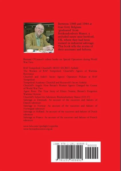 Between 1940 and 1944 forty Belgians were trained in industrial sabotage at Brickendonbury Manor, near Hertford, UK. This book tells the stories of their successes and failures when they were dropped into Belgian. They include:Emile Tromme, Robert Jourdain, Armand Campion, Octave Fabri, Jean Scohier, Jean Cassart, Henri Verhaeghen, André Wendelen, Achille Hottia, Oscar Catherine, Valère Passelecq, Willy Bernaert, Jean Deflem, Léon Kaanen, ? Piquart, Felicien Moreau, Victor Lemmens, Pierre Osterrieth, Pierre Vliex, Frederic Veldekens, Henri Frenay, Jean Woluwe and Jean van Gyseghem, Jean Schools, Leon Engelen, Adhemar Delplace, Francois Mathot, André Berten, Alphonse Mabille, Theo Andries, André Bayet, Pierre Davreux, Léon Joye, Georges André, Maurice Bertrand, Robert Duby, Zephir Braibant, Leon Servais, Raymonde Thonon and André Guissart.