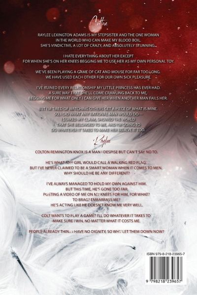An all-new dark standalone romance from the USA Today & Wall Street Journal bestselling author, Shantel Tessier. COLTON Raylee Lexington Adams is my stepsister and the one woman in the world who can make my blood boil. She's vindictive, a lot of crazy, and absolutely stunning. I hate everything about her except for when she's on her knees begging me to use her as my own personal toy. We've been playing a game of cat and mouse for far too long. We have used each other for our own sick pleasure. I've ruined every relationship my little princess has ever had. A sure way that she'll come crawling back to me, begging me for what only I can give her when another man fails her. But I'm tired of watching others get a piece of what is mine. So, I did what any rational man would do-I staked my claim, showed the world that she belonged to me, and I'm going to do whatever it takes to make her believe it too. RAYLEE Colton Remington Knox is a man I despise but can't say no to. He's what any girl would call a walking red flag. But I've never claimed to be a smart woman when it comes to men. Why should he be any different? I've always managed to hold my own against him. But this time, he's gone too far. Posting a video of me on my knees for him, for what? To brag? Embarrass me? He's acting like he doesn't know me very well. Colt wants to play a game? I'll do whatever it takes to make sure I win. No matter what it costs me. People already think I have no dignity, so why let them down now? Things to know about Sabotage A dark college/stepbrother romance TW (Please see author's note at the beginning of the book. If you have no triggers and want to go in blind, please skip to the prologue.) J/P (jealous/possessive) H OTT (over the top) H Told in multiple POVs